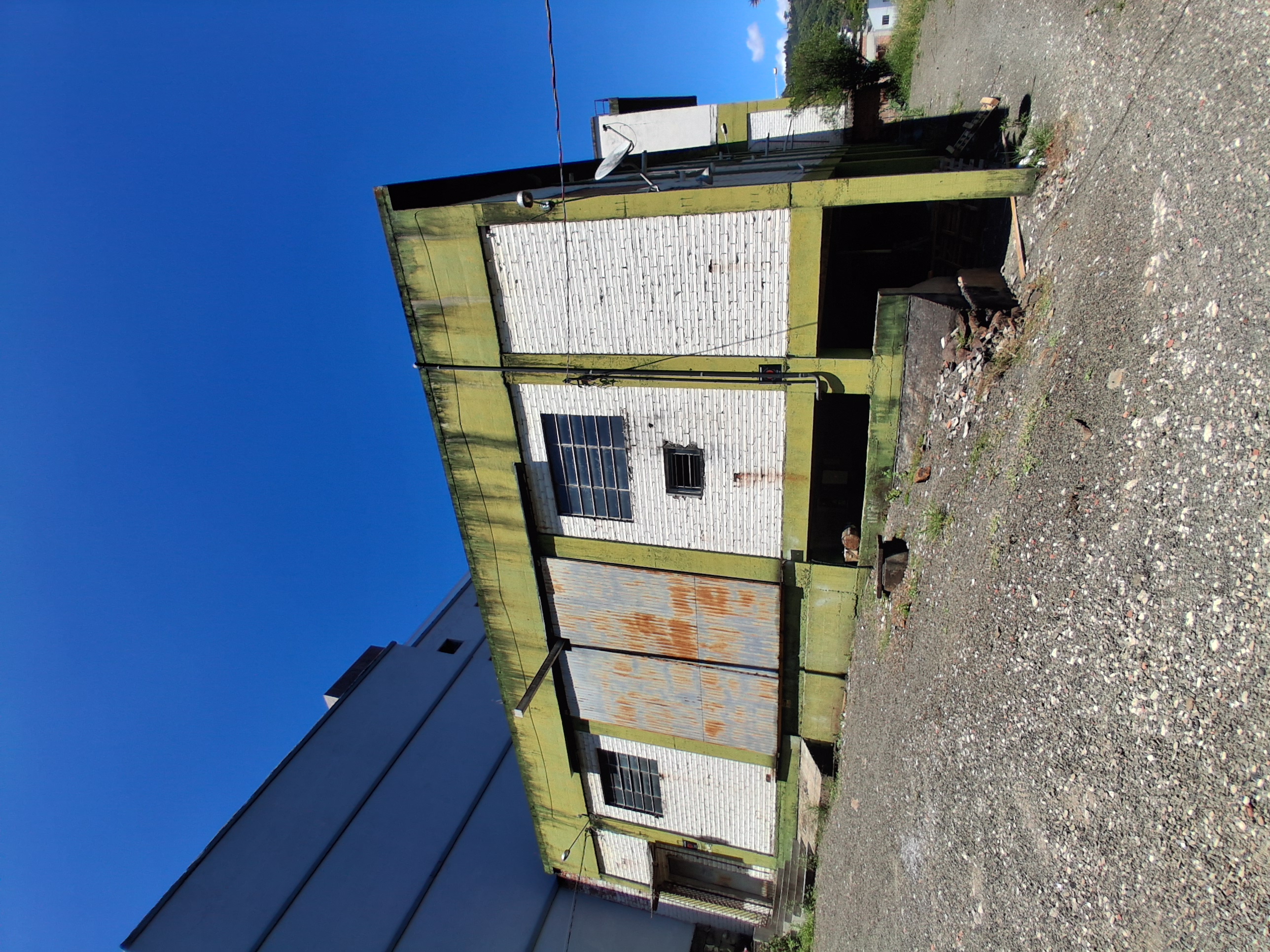 Barracão com 375 m², um portão de correr, conta com mezanino na área interna, área de depósito/escritório e banheiro