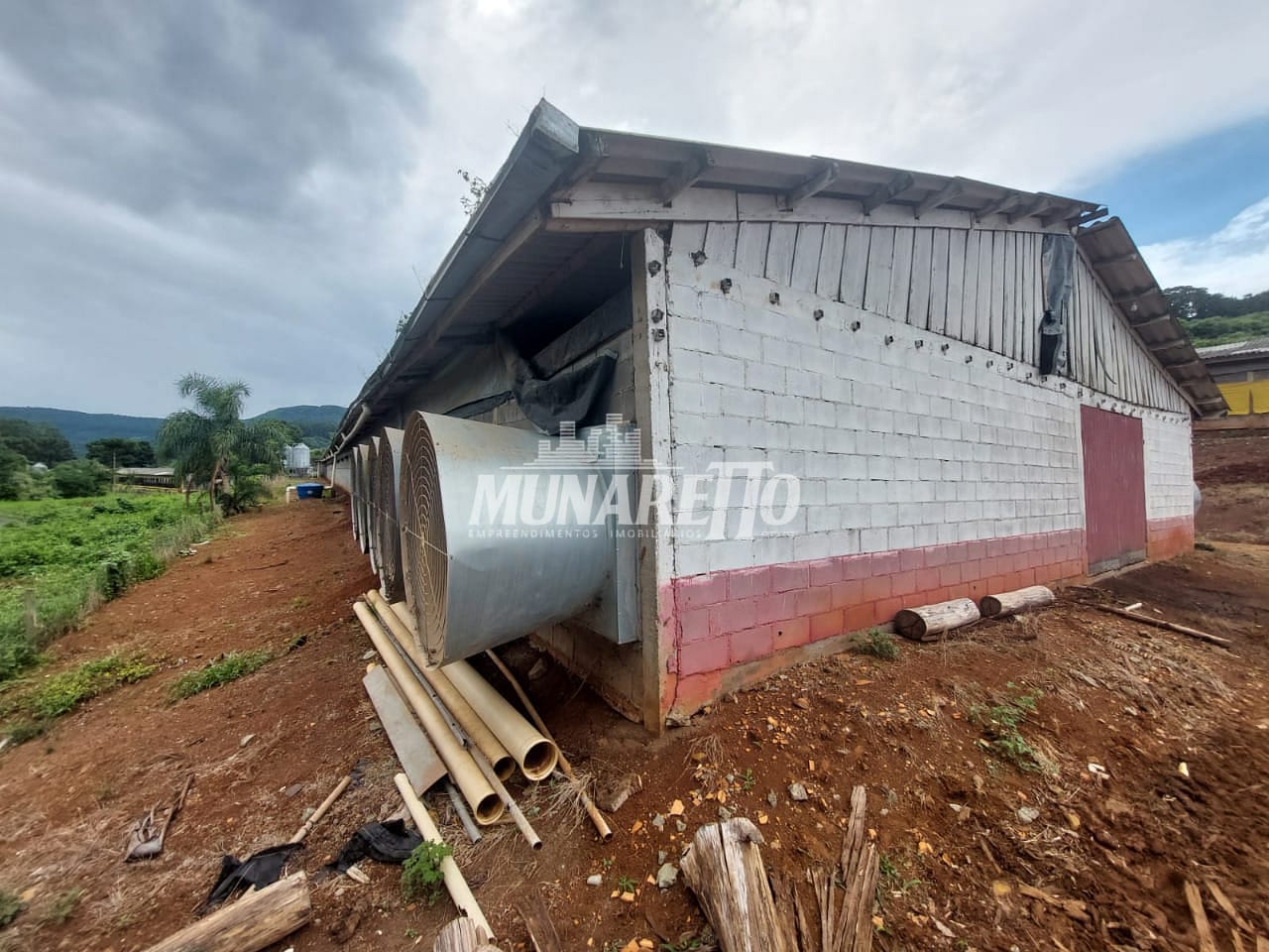 Conta com 12 hectares, sendo que 2 hectare para plantio e demais para instalação dos aviários e chiqueiros.