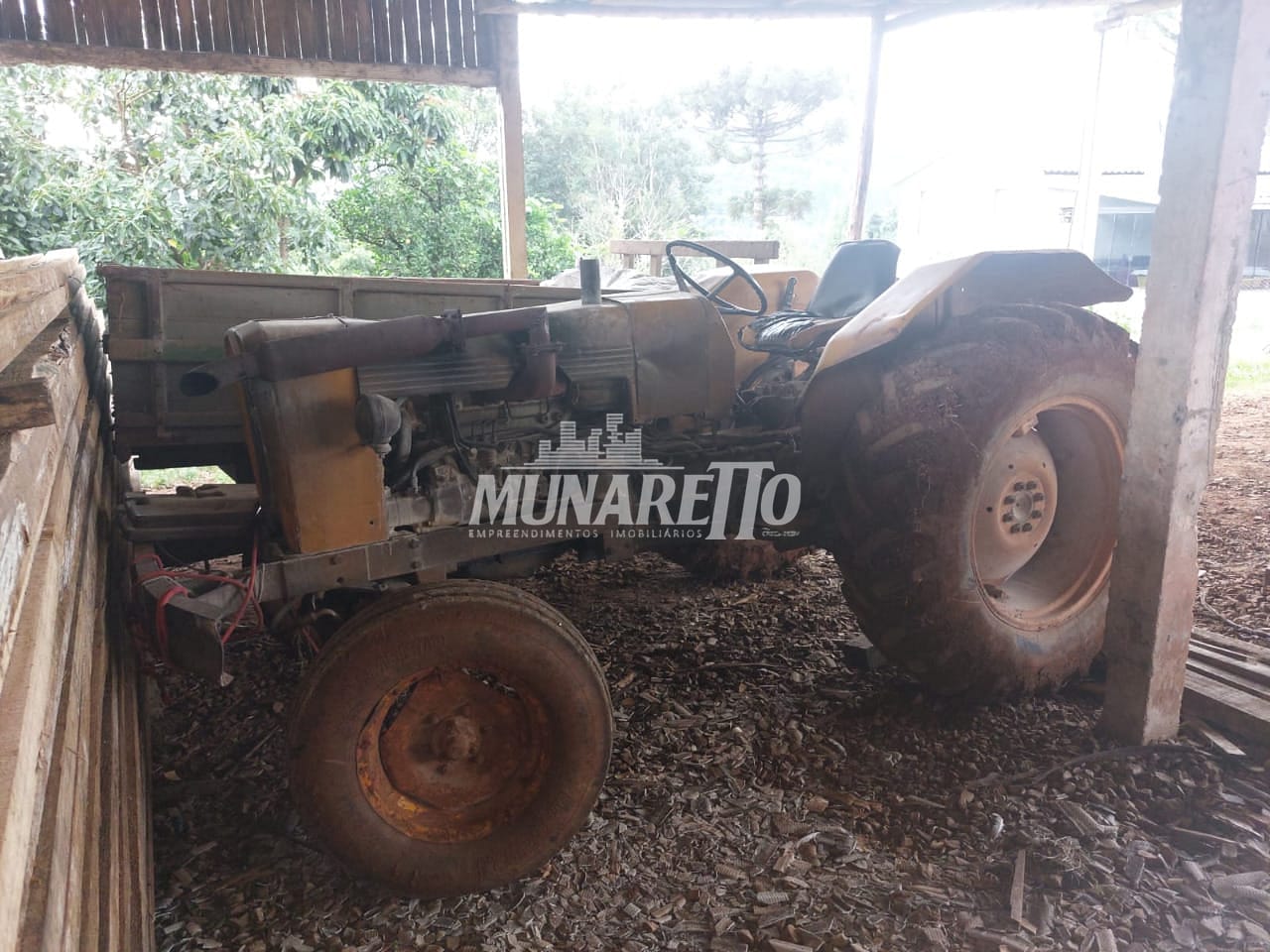 Galpão maquinas 20 x 14 - 2 Trator ( 1 agrale 5075.4 com 1600 horas e 1 valmet 68), 1 distribuidor de adubo com capacidade de 4 mil litros com rodado duplo, 1 caretão, duas maquinas para bater cama de aviário, 1 cortador de lenha hidráulico.