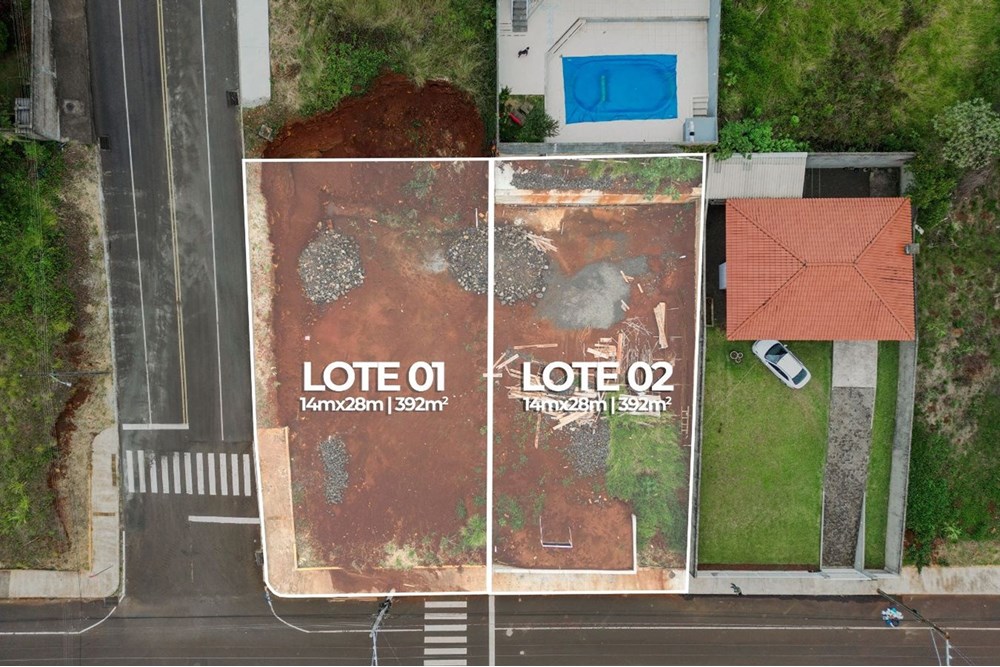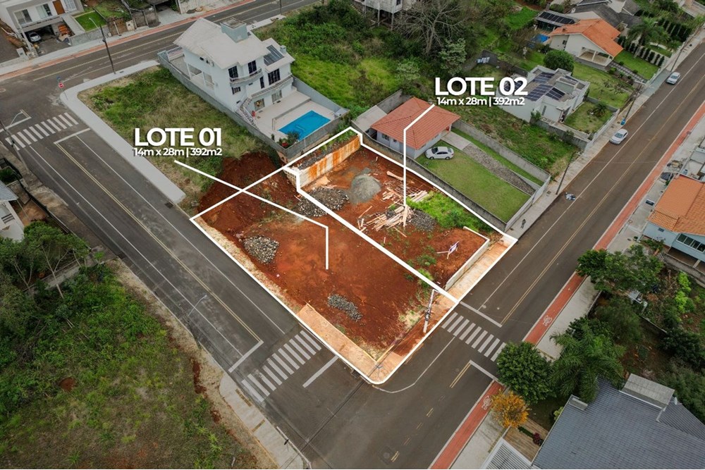 Apresentamos uma excelente oportunidade de investimento no bairro Jardim Alvorada, em Joaçaba: um terreno de esquina localizado na Rua Tancredo Neves, pronto para receber o seu projeto de vida ou empreendimento. O terreno conta com dimensões generosas, aproximadamente 14 metros de frente por 28 metros de profundidade, totalizando 392m², e está situado em uma região com infraestrutura completa, incluindo asfalto, rede de esgoto, água, iluminação pública e drenagem pluvial.